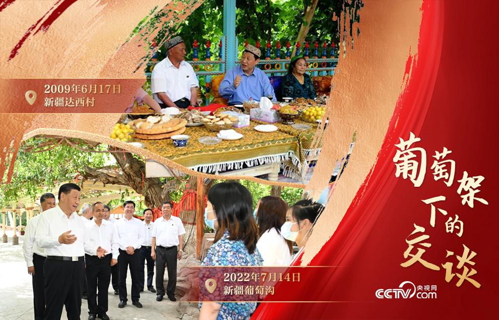 這段對話,發生于2022年7月14日。那天下午,習近平總書記來到新疆吐魯番的葡萄溝,與來自天南海北的游客親切交談。