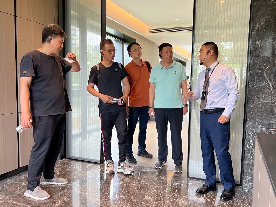 在上上地產營銷團隊的陪同下,河南洛陽龍之夢置業總裁李紅建一行先后參觀了松生活館、景觀示范區及高定美學樣板間,實地感受上上玫瑰園高端實景呈現。