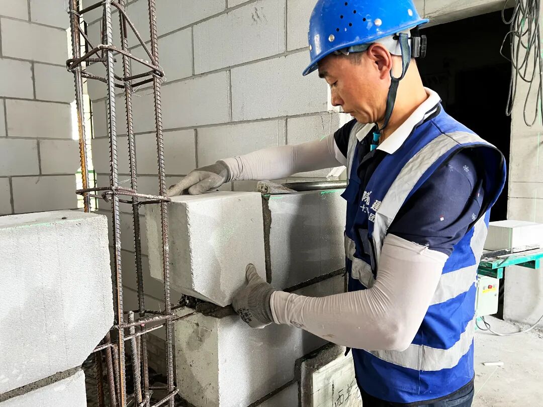 在砌筑墻體的過程中,上上森林里施工團隊嚴格把控關鍵細節。