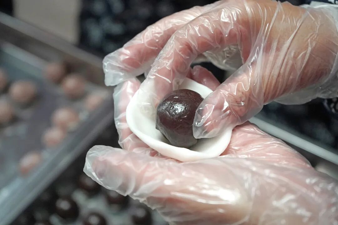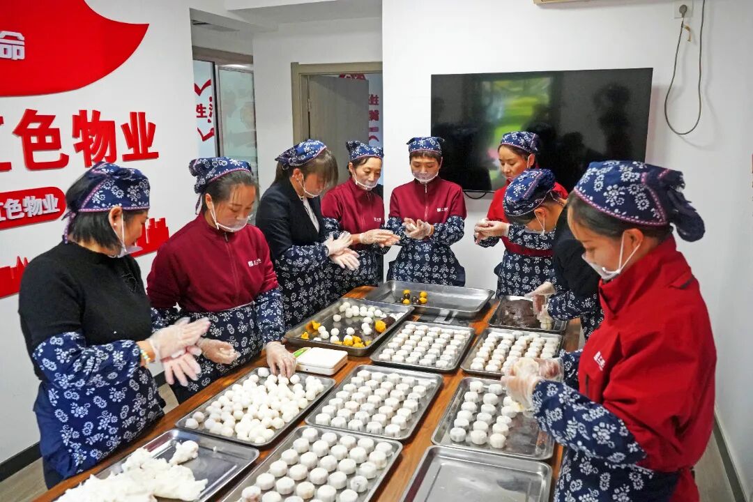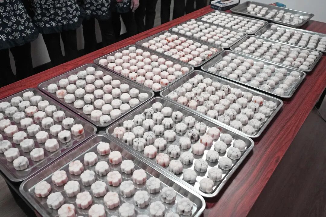 揉面團、包餡料、壓模具,工作人員熟練操作間,一枚枚晶瑩剔透、造型精致的冰皮月餅便新鮮出爐。當精心準備的月餅送到業(yè)主手中,不僅是一塊香甜的糕點,更是一份真摯的節(jié)日問候與祝福。一口下去,甜在舌尖,暖在心間。