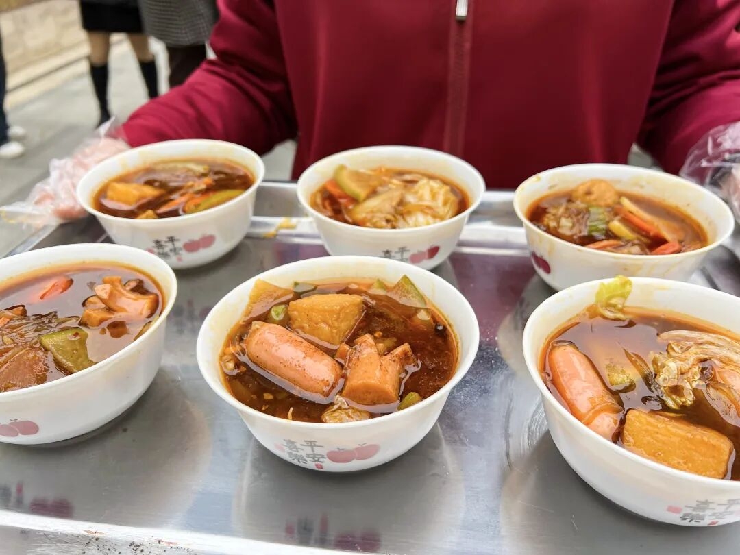 當(dāng)肉香混著菜香慢慢升騰,家人們?cè)缫妖R聚,笑語(yǔ)環(huán)繞。工作人員手起勺落,將熱氣騰騰的燴菜滿滿盛入碗中,每一碗都裝得扎實(shí),遞得穩(wěn)妥,暖意也隨之傳遞到每個(gè)人手中。