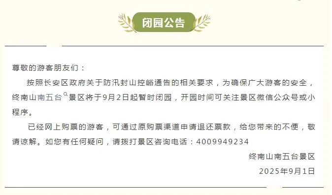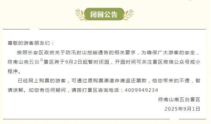 陜西多景區發布閉園公告