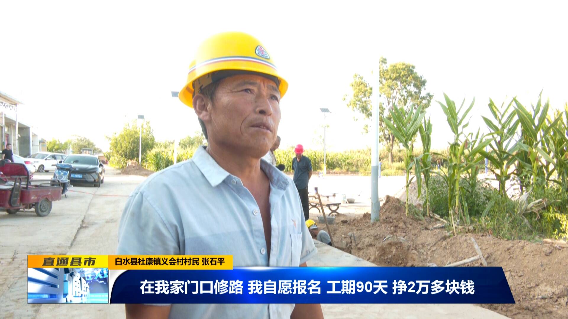 白水縣杜康鎮義會村村民 張石平:“在我家門口修路,我自愿報名,工期90天,掙2萬多塊錢。”
