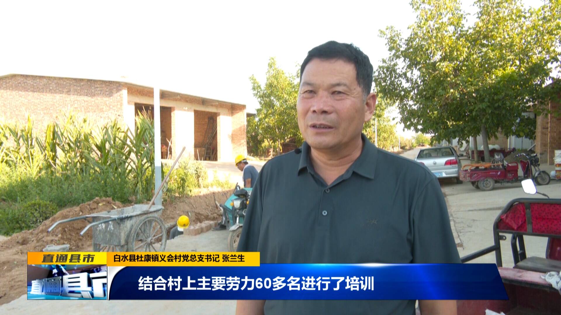 白水縣杜康鎮義會村黨總支書記 張蘭生:“結合村上主要勞力60多名進行了培訓。為村上打造了4條水泥路,現在我們已經完工一條道路。再有三條道路正在進行施工中,剩余全部工程我們是計劃在9月底全部竣工。”