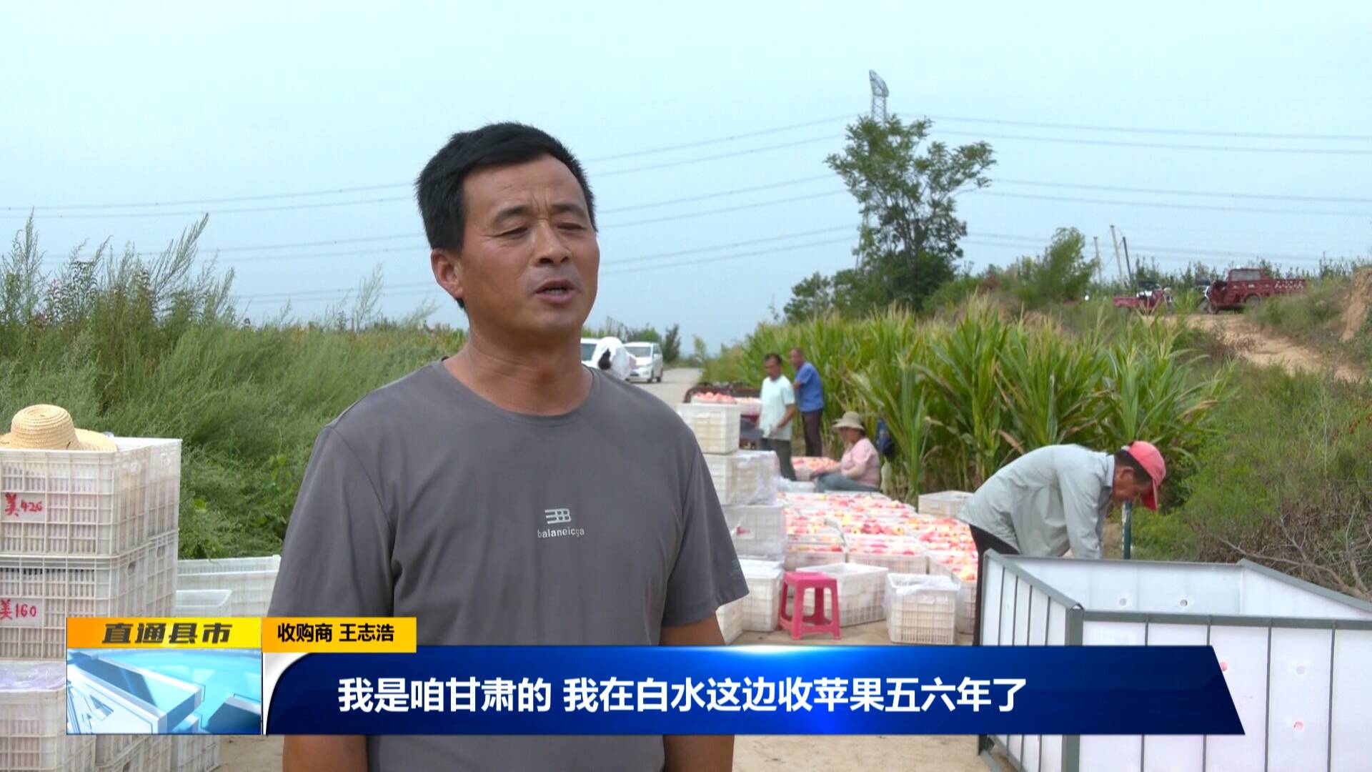 收購商 王志浩:“我是咱甘肅的,我在白水這邊收蘋果五六年了,總體來說白水的蘋果質量還是蠻好的。今年到這總共收了六個車吧,一個車就是兩萬斤,(總共)也就十幾萬斤吧?!?/p>