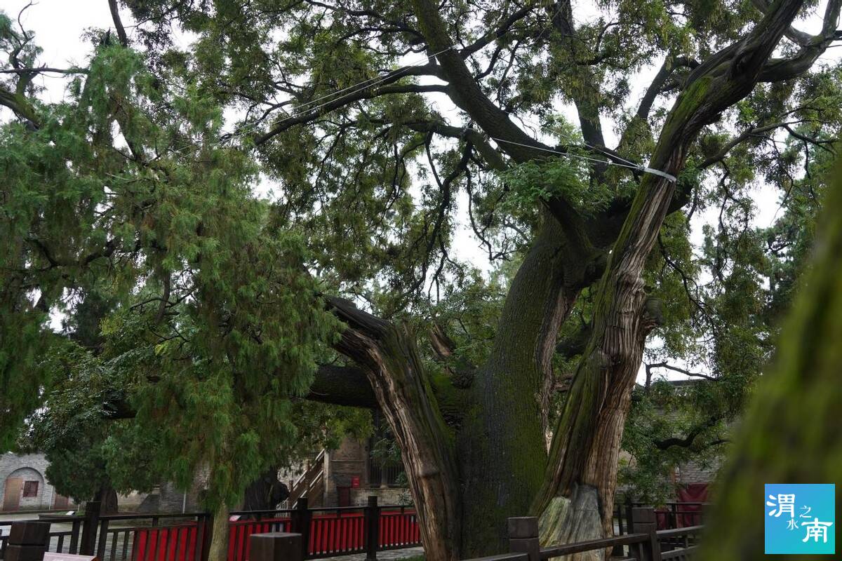 這里有兩棵樹,一棵古槐,一棵古柏,合稱“柏抱槐”,是全國的百棵名樹之一
