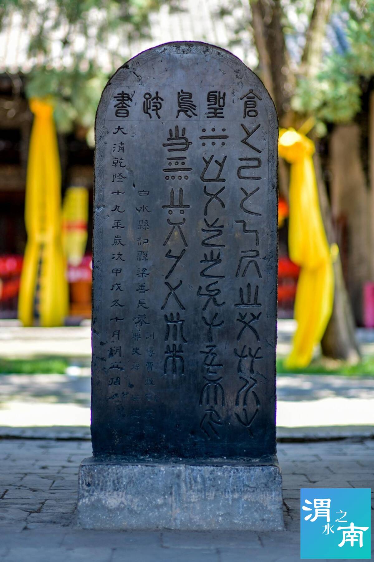 《倉圣鳥跡書碑》位于倉頡廟前殿正中央
