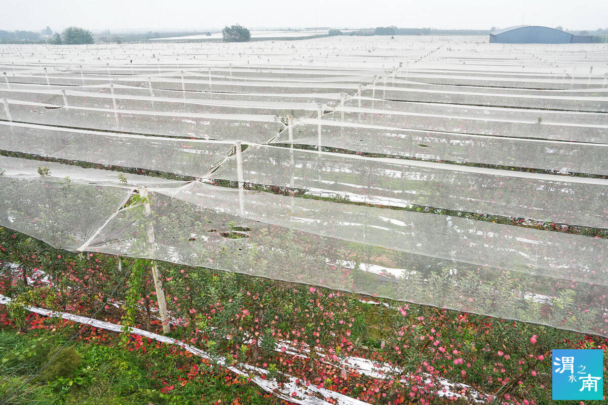 帶著對文明的敬畏之心,觀察團隨即奔赴第二站——林皋鎮的萬畝白水蘋果核心產區。在以瑞陽、瑞雪、瑞香紅、愛妃為主要種植品種的現代化蘋果園,紅彤彤的蘋果掛滿枝頭,宛如一串串喜慶的燈籠。