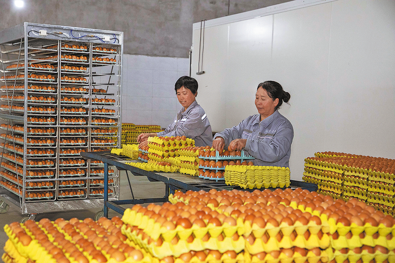 尚陽(yáng)生態(tài)禽業(yè)有限公司廠房?jī)?nèi),工人正在篩選種苗雞蛋。本報(bào)記者 韓樂 攝