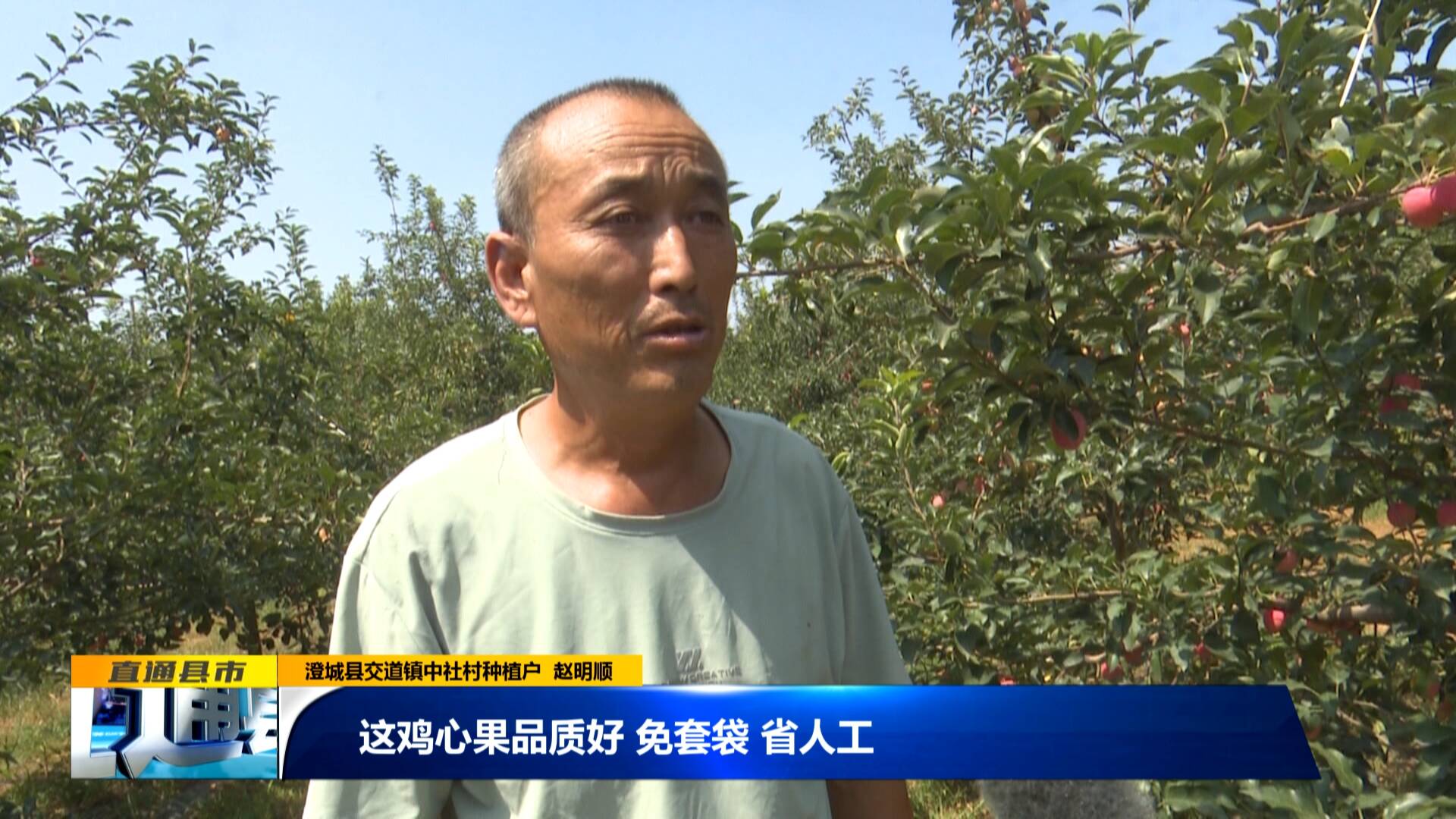 澄城縣交道鎮中社村種植戶 趙明順:“這雞心果品質好,免套袋,省人工,今年比去年增產30%左右,目前一斤客商收6塊多左右,一畝地可能下來就是一萬元,四畝地就是四萬元?!?/p>